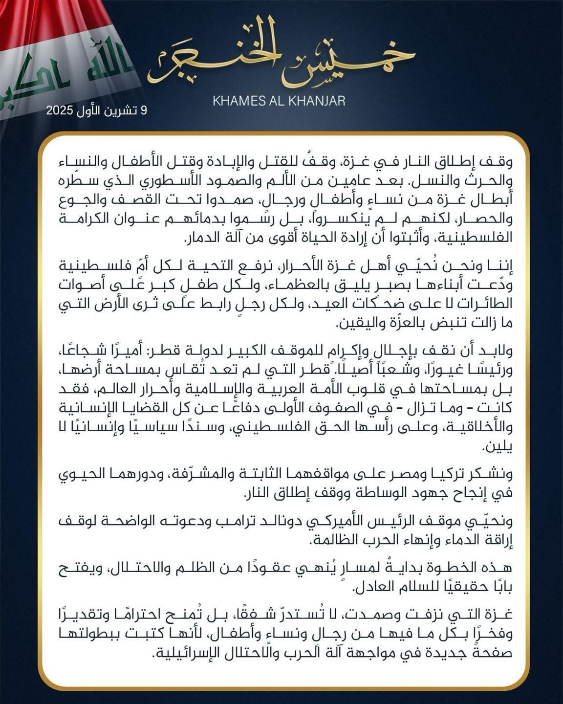 عشيرة السادة الأشراف في نينوى تؤيد مرشحها محمد منذر اليوزبكي